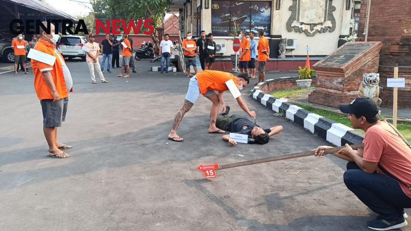 Polres Gianyar Gelar Rekontruksi Kasus Penganiayaan Buruh Proyek Hingga Tewas