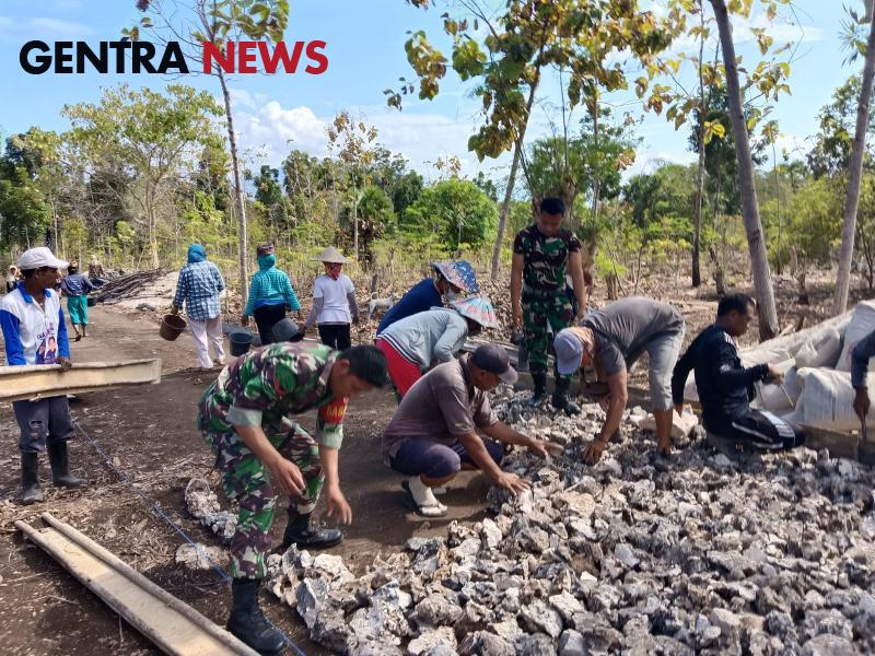 Gentra News NTT – Flotim, Kopda M herjan dan Praka Purwanto Babinsa Koramil 1624 – 05/Solor bersama warga binaan melakukan kegiatan Karya Bakti pengecoran