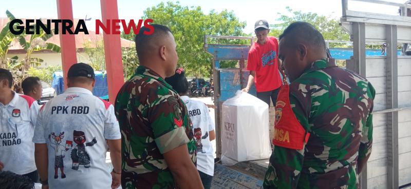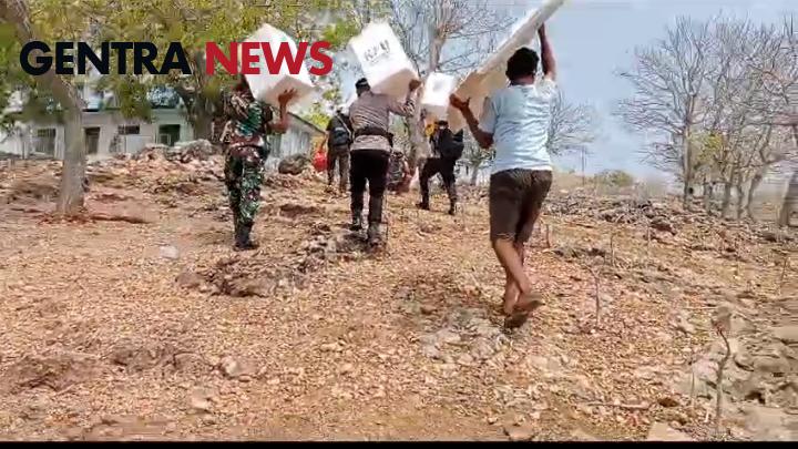 Gentra News NTT – Rote Ndao – Babinsa dan Bhabinkamtibmas mengawal pergeseran logistik dari sekretariat PPS ke PPK kecamatan memastikan keamanan logistik pemilu, antara