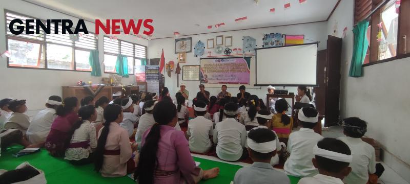 Bhabinkamtibmas Desa Talibeng Dalam Menyampaikan Materi Pencegahan Narkoba dan Bullying di Sdn 3 Talibeng