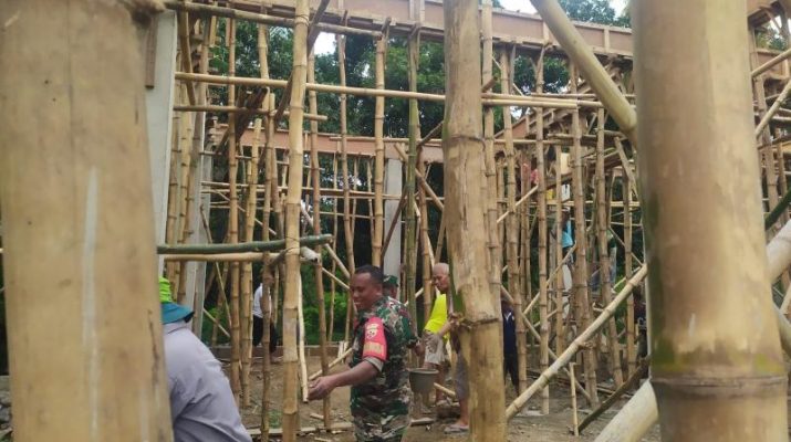 Gentra News NTB – Sumbawa, Koramil 1607-04/Alas bersama warga dan pemerintah desa setempat menggelar kegiatan gotong-royong pengecoran pembangunan Masjid Al Fattah yang terletak di