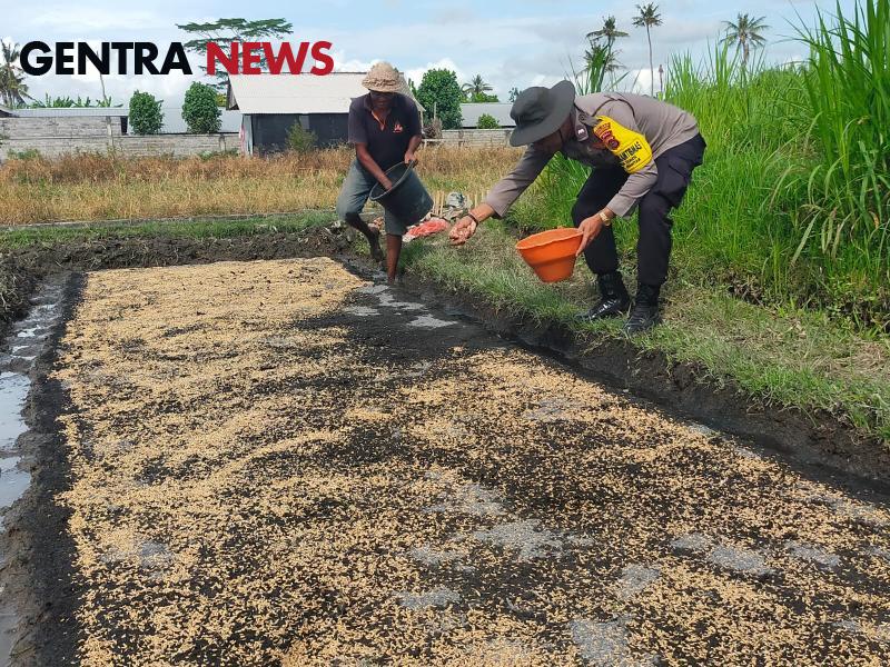 Gentra News Bali – Gianyar, Bhabinkamtibmas Desa Temesi Aipda Ngakan Gede Sukrayana, S.H. membantu warga Petani bernama I Made Kicen, Laki-laki, 65 Th, Br.