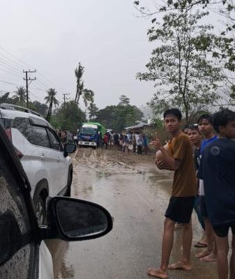 Tanah Banjir Gunung Tutupi Jalan, Babinsa Ds. Sari Ramil 1608-03/Sape ajak warga Gotong Royong