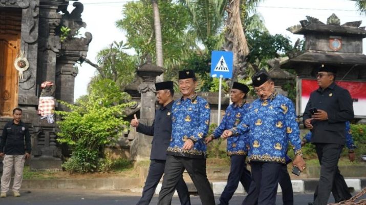 Gentra News Bali – Karangasem – Bupati Karangasem, I Gede Dana, memimpin upacara peringatan Hari Ulang Tahun (HUT) KORPRI ke-53, HUT PGRI ke-79, dan