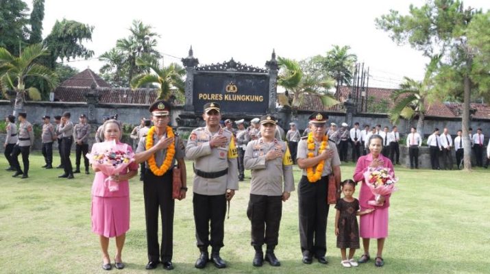 Polres Klungkung menggelar upacara kenaikan pangkat perwira penghargaan yang dirangkai dengan pemberian piagam kepada personel Polres Klungkung yang berprestasi, serta pelepasa personel Polres Klungkung