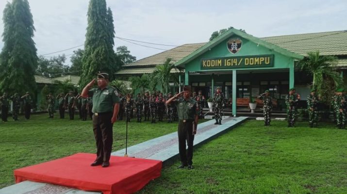 Gentra News NTB – Dompu, Kasdim 1614/Dompu Mayor Inf I Wayan Sulendra AS.H.,M.H memimpin upacara Bendera Merah Putih untuk mengenang jasa para Pahlawan sekaligus