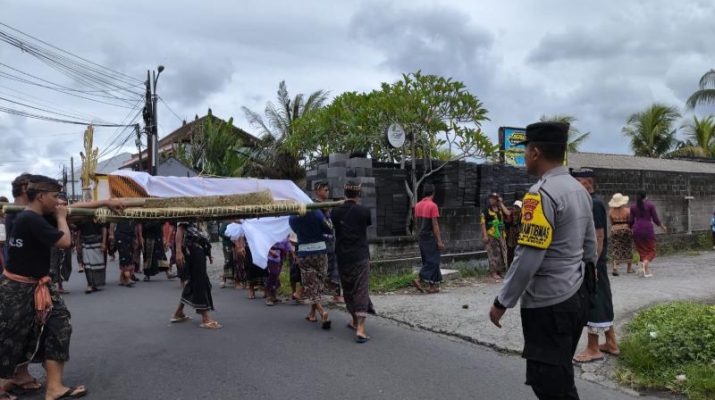 Guna Memperlancar Kegiatan Upacara Ngaben Mekingsan di Geni Bhabinkamtibmas Desa Kukuh Polsek Marga Melaksanakan Pengamanan