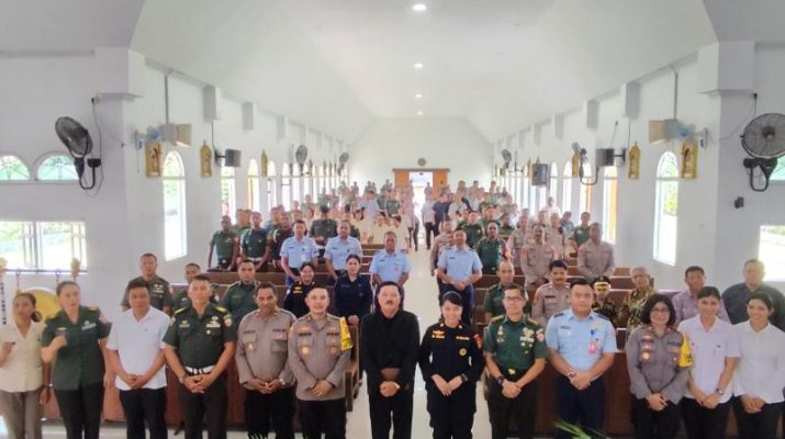 Gentra News Bali – Polda Bali bersama TNI Kodam IX/Udayana yang beragama katolik dan Protestan melaksanakan Ibadah gabungan dalam rangka pembinaan Mental Rohani, ideologi
