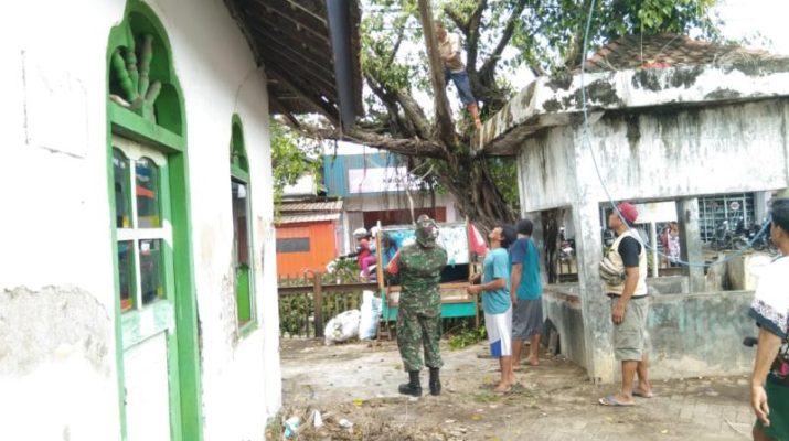 Sertu Herman, Bersama Muspika Kec. Empang Gotong Royong Tebang Pohon untuk Keselamatan Pengguna Jalan