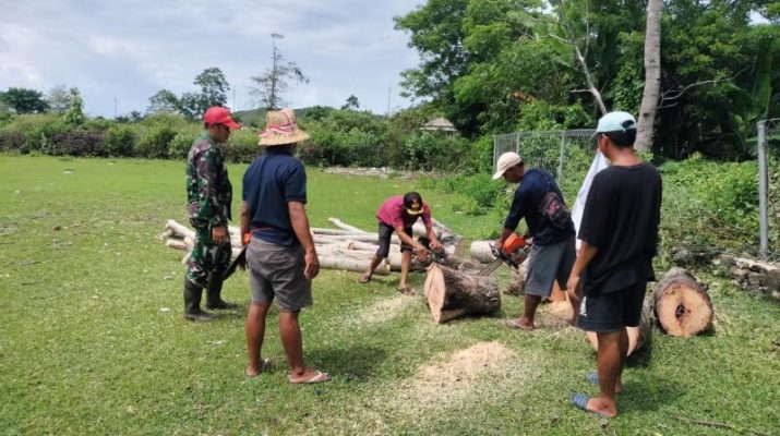 Gentra News NTT – Sumbawa Barat – Babinsa 1628-02/Sekongkang Desa Tongo Serda Edi karki laksanakan Kegiatan Gotong Royong di Lapangan Sepak Bola Tiu Baru,
