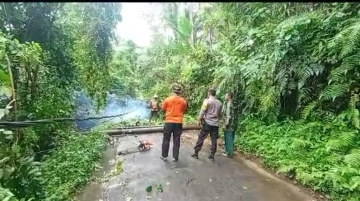 Bhabinkamtibmas Desa Cau Belayu Polsek Marga Bantu Bersihkan Pohon tumbang