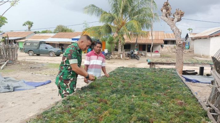 Gentra News NTT – Babinsa Koramil 03/Pahunga Lodu Kodim 1601/Sumba Timur Serka Daniel Umbu Ndawa melaksanakan komunikasi sosial dengan pembudidaya rumput laut yang bertempat
