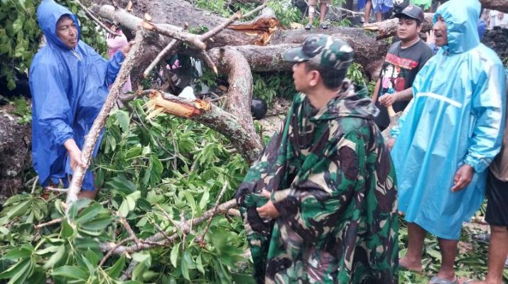 Gentra News Bali – Klungkung,- Hujan lebat yang disertai angin melanda wilayah Desa Lembongan, Kecamatan Nusa Penida yang mengakibatkan pohon jenis beringin tumbang, Senin