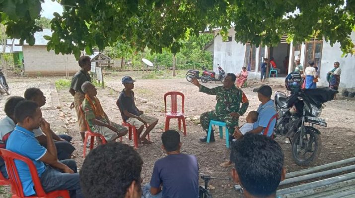 Gentra News NTT – KODIM 1605/BELU, Babinsa Desa Bonibais Sertu Afonso Delima Koramil 1605-05/Kobalima dalam melaksanakan kegiatan pemantauan di wilayah Desa binaannya melakukan komsos