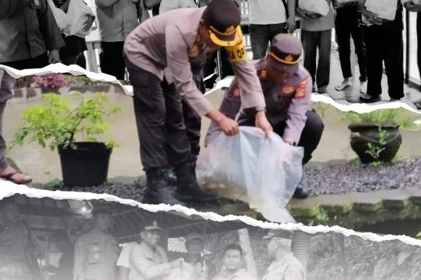 Dukung Ketahan pangan Dalam Giat Minggu Kasih, Kapolsek Sidemen Mendampingi Kapolres Karangasem Memberikan Bibit Ikan Nila serta Paket Sembako kepada Pokmas Mina Valud Lestari