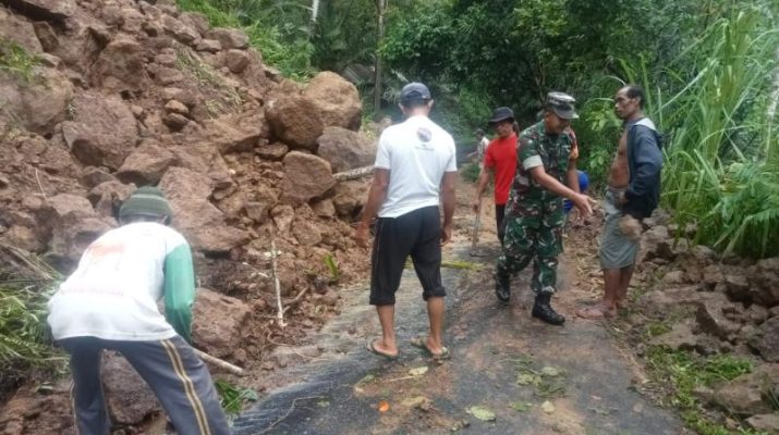 Jalan Tertutup Longsor, Babinsa 1623-06/Selat Turun Tangan Bergotong Royong Bersihkan Tumpukan Material