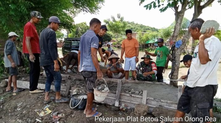 Gotong Royong Babinsa dan Warga Desa Simu, Bersihkan Lingkungan dan Perbaiki Jembatan Saluran Air