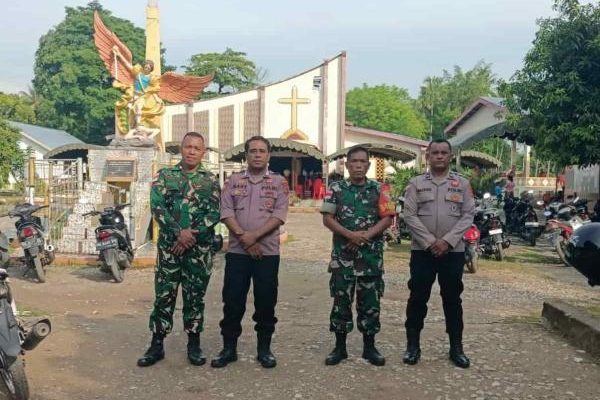 Gentra News NTT – KODIM 1605/BELU, Sejumlah personil Babinsa Koramil 1605-05/Kobalima melakukan pengamanan perayaan Natal hari kedua di sejumlah gereja di wilayah Kecamatan Kobalima,