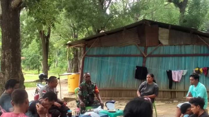 Gentra News NTT – KODIM 1605/BELU, Babinsa Koramil 1605-01/Kota Atambua Sertu Jose Lopes bersama Babinkamtibmas melaksanakan komsos dengan warga masyarakat di Kelurahan Fatukbot, Kecamatan