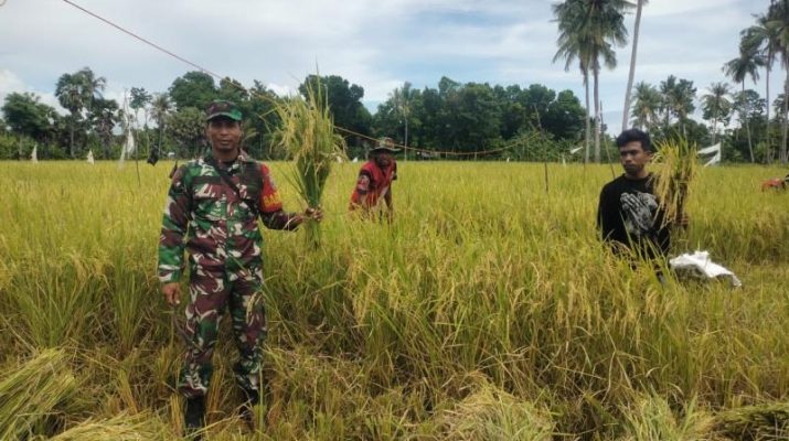 Gentra.co.id NTT – Sebagai wujud nyata dalam mendukung ketahanan pangan di wilayah binaannya,Babinsa Koramil 05/Waingapu Kodim 1601/Sumba Timur Sertu Darusman, melaksanakan kegiatan membantu panen