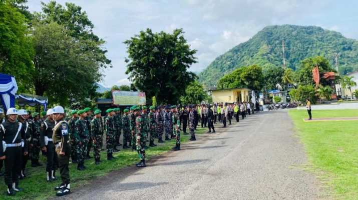 Gentra.co.id NTT – NTT – Ende, Personel Kodim 1602/Ende mengikuti apel persiapan pengamanan malam pergantian Tahun Baru 2025 yang digelar oleh Polres Ende, Selasa