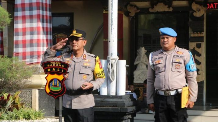 Gentra.co.id Bali – Mangupura – Kepala Kepolisian Resor Badung AKBP Teguh Priyo Wasono, SIK pimpin upacara kenaikan pangkat personil Polri Polres Badung di Lapangan