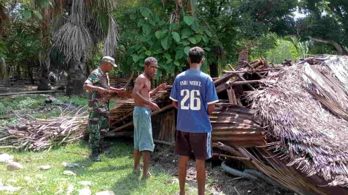 Gentra News NTT – KODIM 1605/BELU, Tingkatkan budaya gotong royong dilingkungan masyarakat agar tidak luntur, Babinsa Desa Litamali Koramil 1605-05/Kobalima Sertu Maximus Nahak membantu