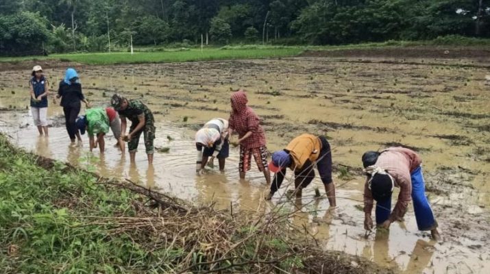 Guna Mewujudkan Ketahanan Pangan, Babinsa Bantu Petani Tanam Padi