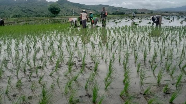 Gentra.co.id NTB – NTB -Dompu. Babinsa Koramil 04/Kilo Kodim 1614/Dompu Sertu Mastudinnur melaksanakan pendampingan menanam padi, di So Nae Poktan Wadu Rangga Dusun Paropa,