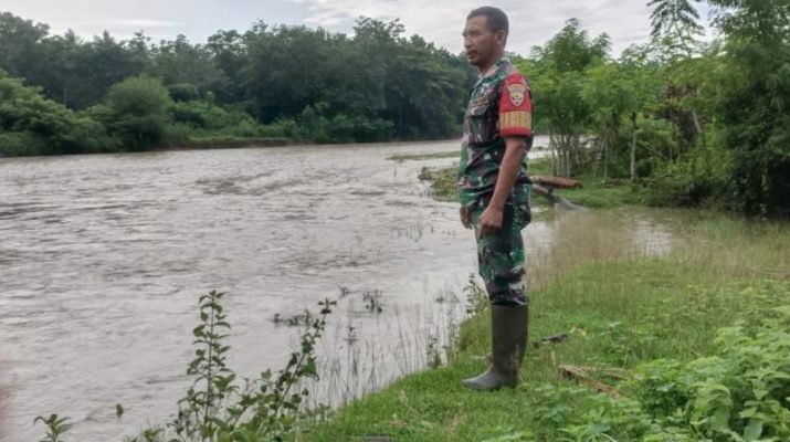 Antisipasi Terjadi Banjir, Babinsa Cek Debit Air Sungai Di Wilayah Desa Binaan