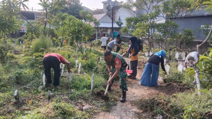 Semangat Kebersamaan, Warga Karang Kelok Bersihkan TPU Assidiqi