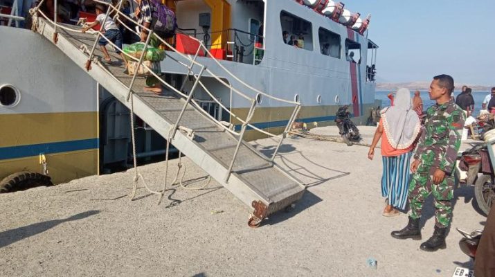 Babinsa Koramil 1624-04/Omesuri Monitoring Kedatangan Kapal KM. Sabuk Nusantara 108
