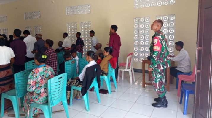 Gentra.co.id NTT – Sabu Raijua – Serka Yestermas Pelang, Babinsa Ledeae Koramil 1604-08/Sabu Raijua, melaksanakan tugas pengamanan sekaligus mengikuti Ibadah Minggu di Gereja GBI