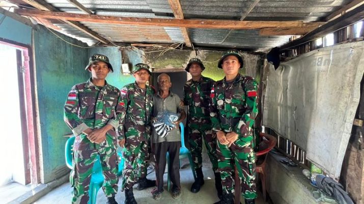 Gentra.co.id NTT – Belu – Satgas Pamtas Yonif 741/GN Pos Salore berikan layanan kesehatan serta bantuan berupa sembako kepada masyarakat lansia di Desa Tulakadi,