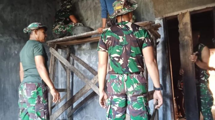 Karya Bhakti Koramil 1608-07/Monta dan Masyarakat Bersama Pemdes Wilamaci Perbaiki Rumah Warga