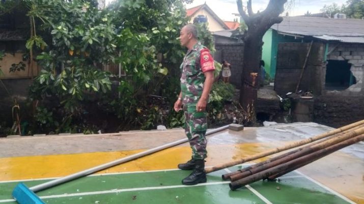 Gentra.co.id NTB – Lombok Timur – Dalam rangka menjaga kebersihan dan kerapian pangkalan, Danpos Suralaga Koramil 1615-01/Selong, Serma M. Yusuf, bersama anggota Koramil 1615-01/Selong