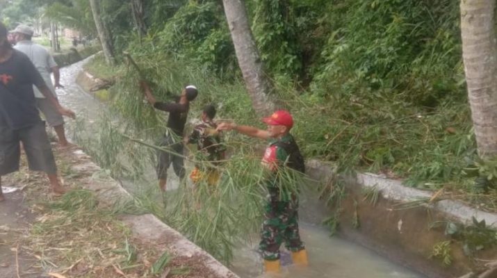 Babinsa Lembah Sari Gotong Royong Bersihkan Irigasi Desa