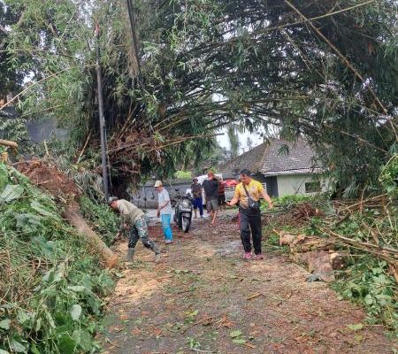 Tutup Badan Jalan, Pohon Tumbang Di Dusun Penarukan Dievakuasi Babinsa Dan Bhabinkamtibmas Bungbungan Bersama BPBD Dan Warga