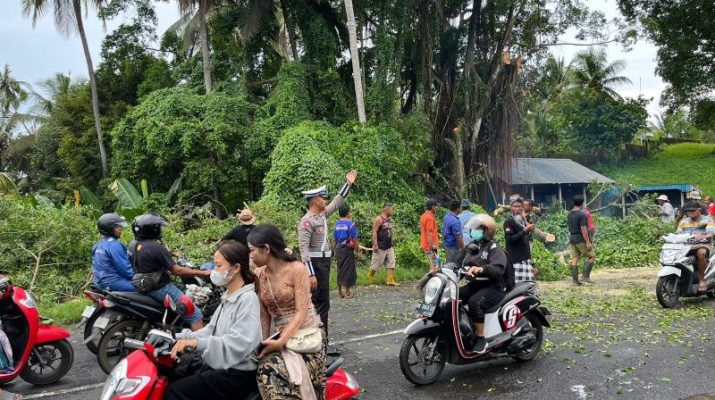 Gentra.co.id Bali – Klungkung, Hujan deras disertai angin kencang menyebabkan pohon jenis durian kembali tumbang di Dusun Penarukan, Desa Bungbungan, Kecamatan Banjarangkan, Jumat (