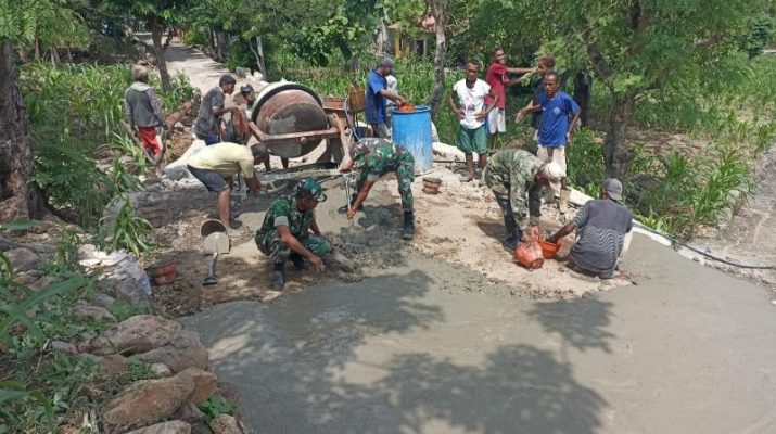 Babinsa Koramil 1624 – 04/Omesuri Bantu Masyarakat Rabat Jalan