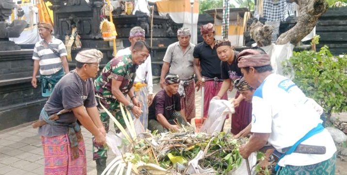 Gentra.co.id Bali – Babinsa Desa Mendoyo Dauh Tukad Serda Suwardi melaksanakan kegiatan Ngayah (Gotong royong) bersama dengan Krama Tempek Banjar Adat Desa Adat Mendoyo