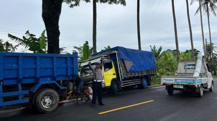 Quick Respon, Aiptu Putu Ariasa Bantu Truk Terperosok Di Jalur Utara