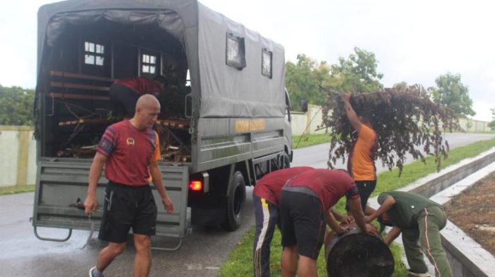 Anggota Kodim 1629/SBD Rutin Kerja Bakti, Guna Jaga kebersihan dan Kerapian Makodim 1629/SBD