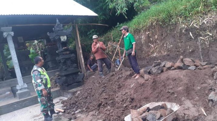 Gentra.co.id Bali – Senin, 13 Januari 2025, Polsek Dawan bersama, Koramil 1610/03 Dawan, BPBD Kabupaten Klungkung melaksanakan kegiatan gotong royong untuk membantu warga yang