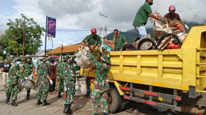 Kodim 1624/Flotim Gotong Royong Bersihkan Sampah Pasar Inpres Larantuka.
