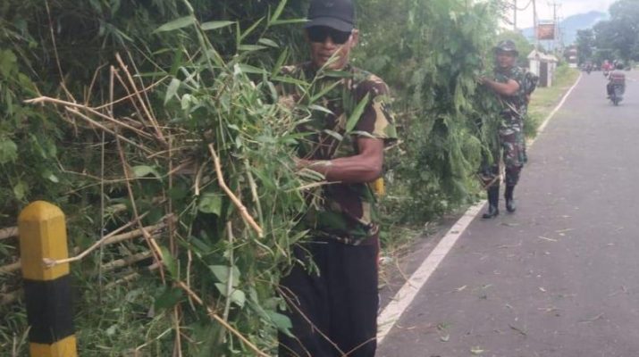 Gentra.co.id NTT – NTT – SIKKA. Personel Koramil 1603-04/Kewapante Kodim 1603/Sikka di pimpin oleh Danramil Lettu Inf Nikolaus Nama Dalot melaksanakan Karya Bakti pembersihan