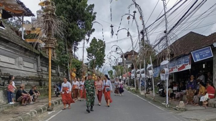 Gentra.co.id Bali – GIANYAR – Babinsa Kelurahan Abianbase Koramil 1616-01/Gianyar Serka I Gusti Ngurah Mudnyana bersama Bhabinkamtibmas Aiptu Dewa Agung Nyoman Alit S. memantau