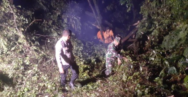 Babinsa Bersama Aparat Terkait Tangani Pohon Tumbang Yang Menutupi Badan Jalan