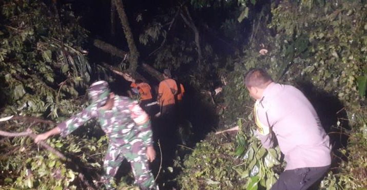 Bhabinkamtibmas Desa Petak Atensi Pohon Tumbang di Jalan Alternatif Banjar Suwat Kaja Menuju Banjar Petak Jeruk Desa Suwat Kecamatan Gianyar.
