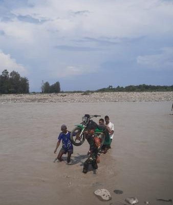 Satgas Pamtas RI-RDTL Sektor Barat Yonarhanud 15/DBY Membantu Masyarakat Melintasi Sungai Nuelfael